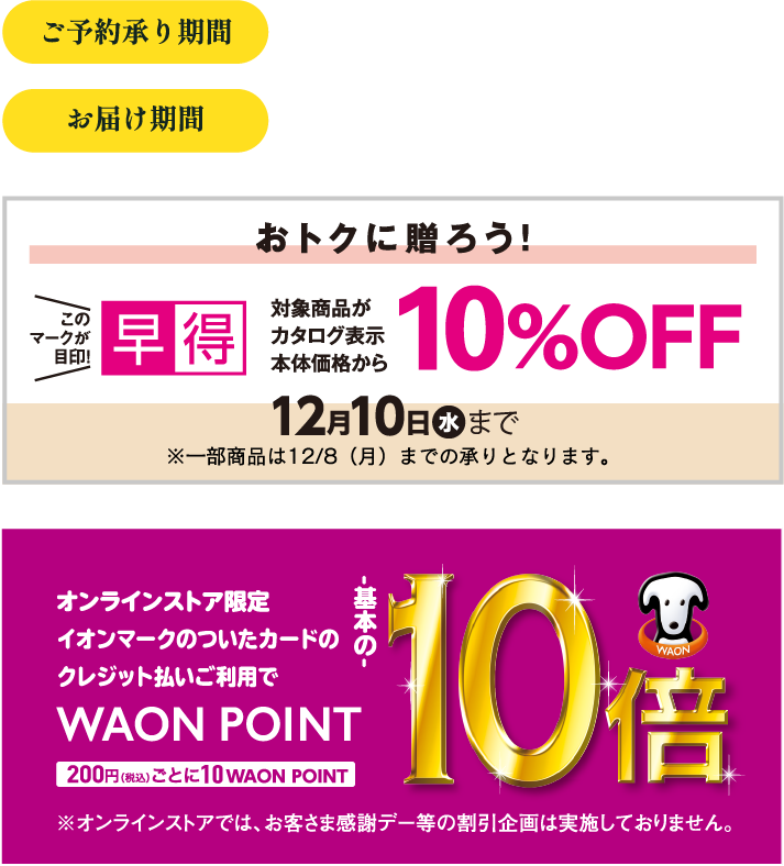 カタログ掲載商品 Web限定商品 美味銘選 フルーツ・減の恵み 海の幸 鍋 銘店和牛・匠和牛・タスマニアビーフ ブランドスイーツ ギフトスイーツセレクション・アイスクリーム えらぼう・フードアルチザン・ピカール・トップバリュギフト 北から南 味めぐり お手軽グルメ・個包装グルメ ハム・お肉総菜 中華のセット・佃煮・しぐれ煮 さつま揚げ・かまぼこ・麺類 食用油・調味料 海苔・缶詰・瓶詰 漬物・乾物・梅干し・お茶 飲料・スープ コーヒー カタログギフト えらべるギフト フラワー 洗剤・入浴剤・他 お買い得・大容量・ワケあり ※オンラインストアでは、酒ギフトの取り扱いがございません。