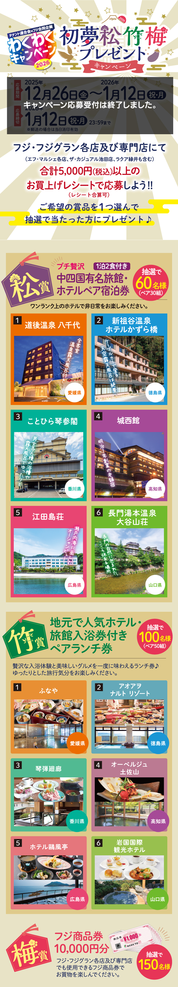 ※POSAカード、切手、印紙、金券に類するもの及び、フジネットショップでのお買上げは除きます。 - 当選発表