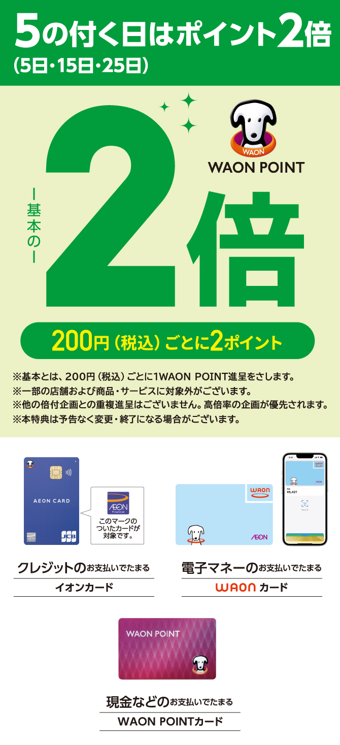 HOME お得・キャンペーン 5の付く日はポイント2倍