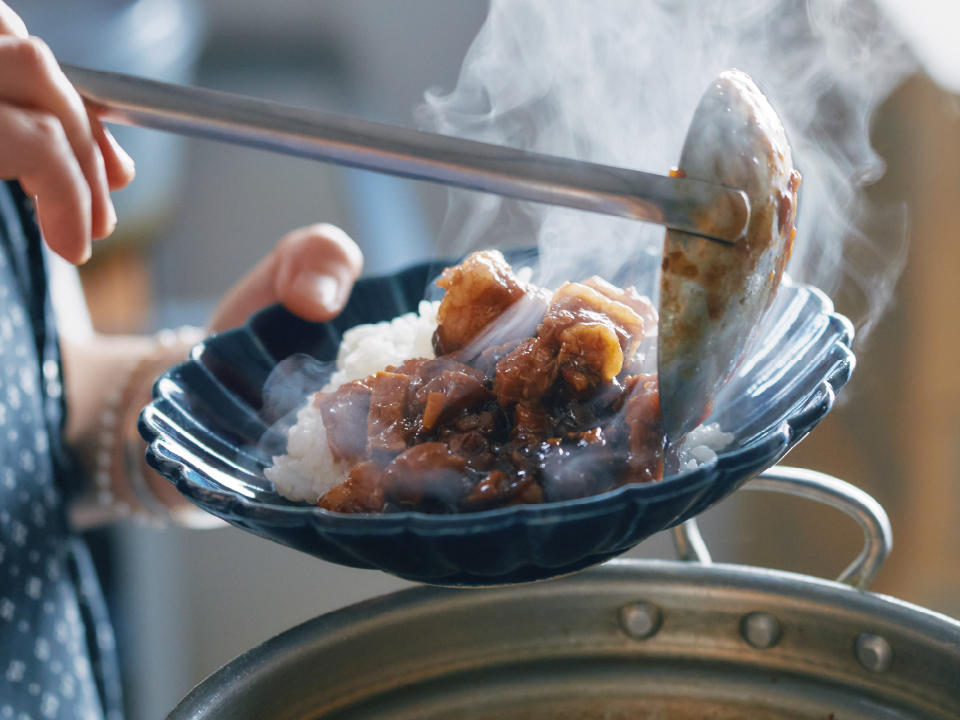 時間があれば1時間ほどかけてゆっくりと煮込むのがおすすめ。愛媛甘とろ豚がホロリと口の中でほどけて、ご飯が止まらなくなる美味しさです。