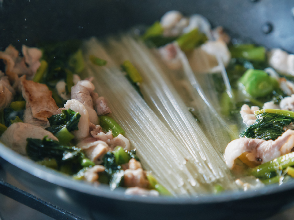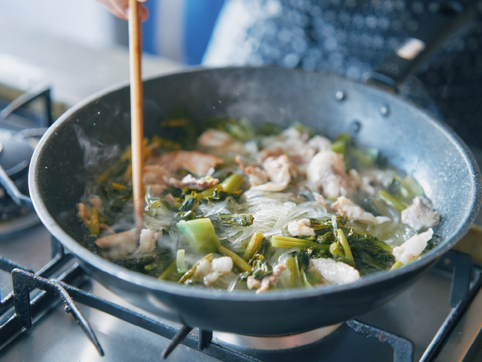 野沢菜と豚肉と春雨の煮込み