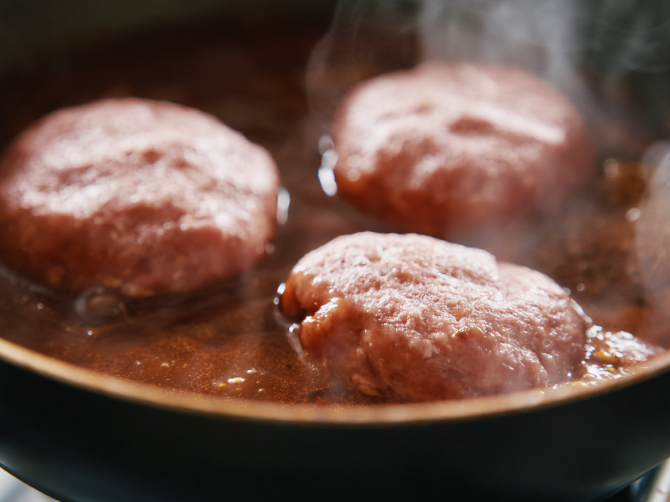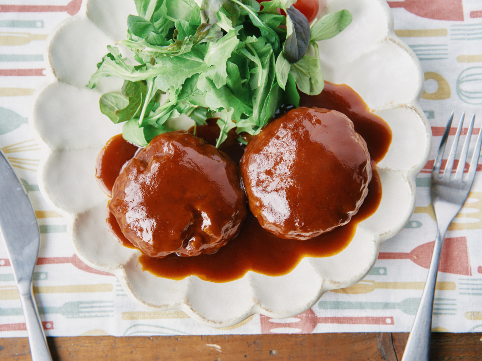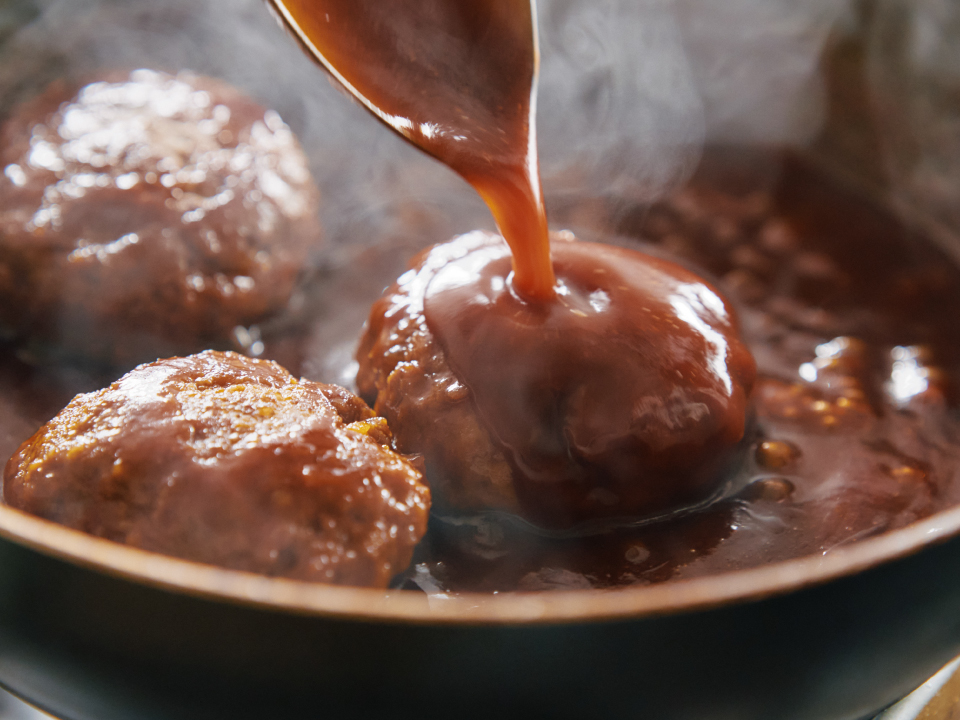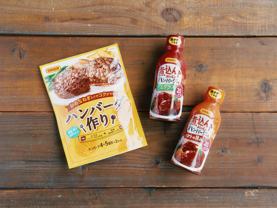 ハンバーグ作りは、こねて焼くだけ。煮込んでおいしいハンバーグソースは、焼かずに煮込むだけ。手間要らずでプロの味!