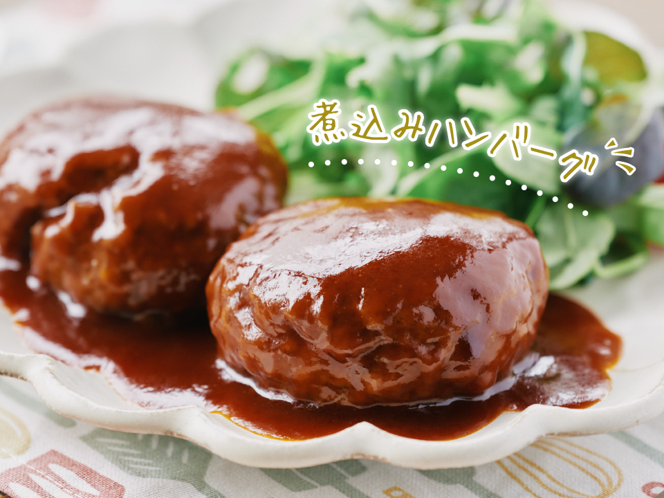 焼かずにそのまま煮込める手軽さが◎。ふっくらとやわらかなハンバーグに仕上がります。捏ねる時間を考慮しても20分程度あれば完成しますので、時間がない朝でもお弁当のおかずになんていうのも可能です。