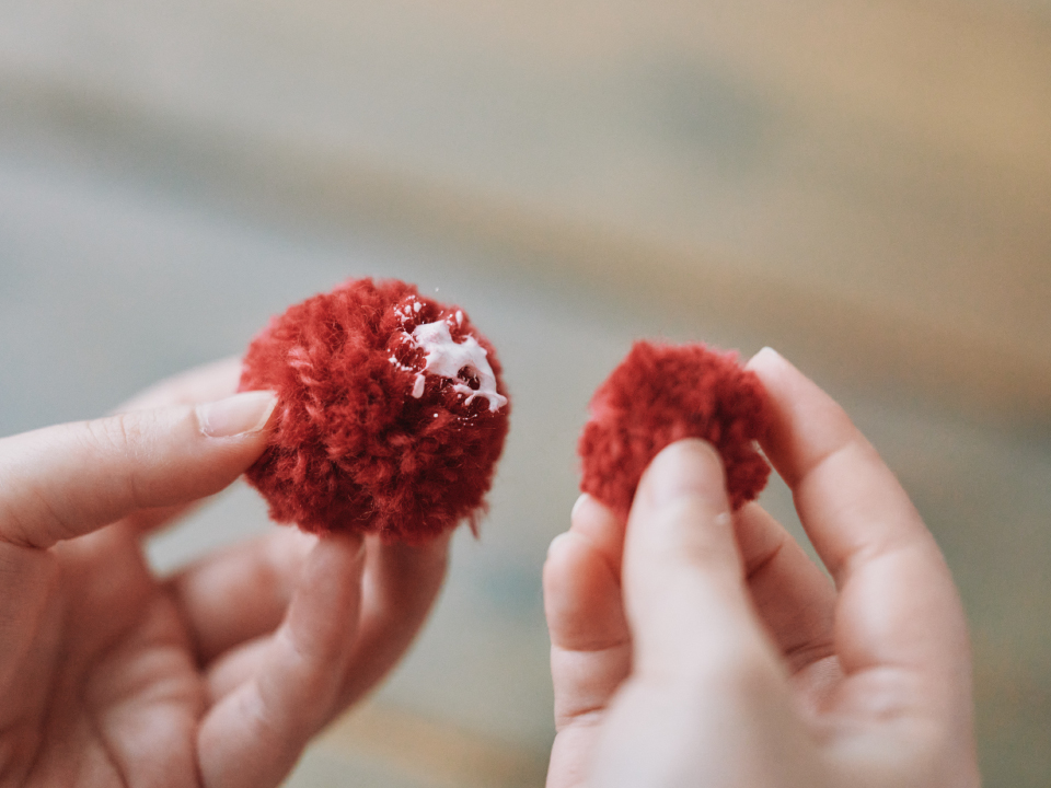 ④ポンポンを3つ作って、ボンドで貼り付けたら完成!