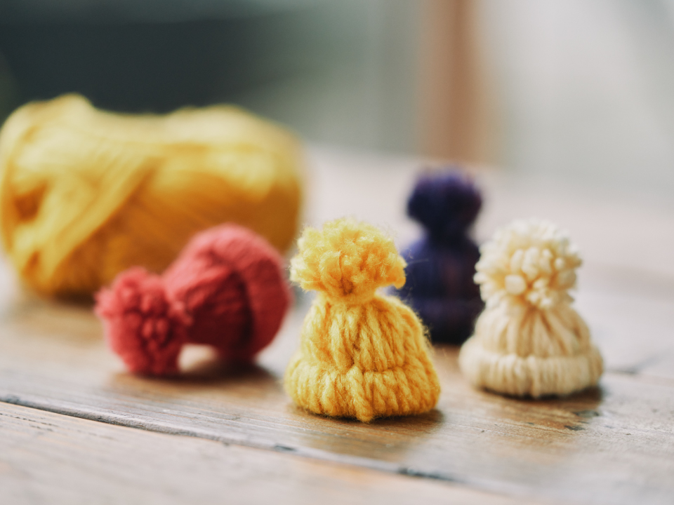 1本の糸から少しずつ形になっていく過程も楽しい、毛糸雑貨。この季節ならではのぬくもりを感じられるのも魅力です。今回ご紹介したアイテムは、ぐるぐる巻きつけたり、輪に通したりするだけでできるので、親子で一緒に楽しむのもおすすめです。