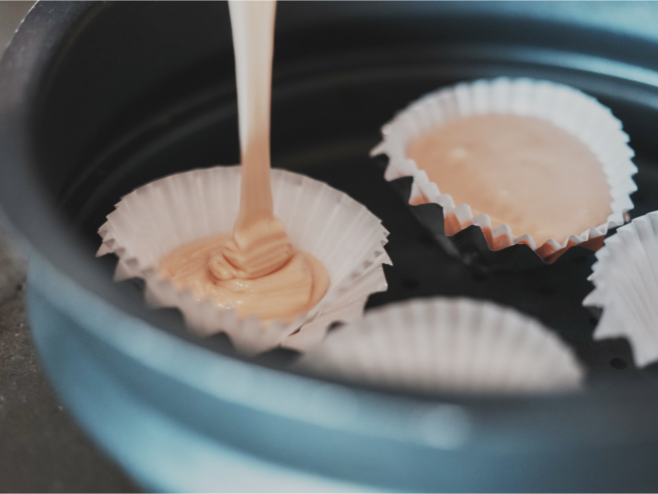 ③お弁当のカップやお好みの耐熱容器に入れて、12〜14分蒸し器で蒸す。