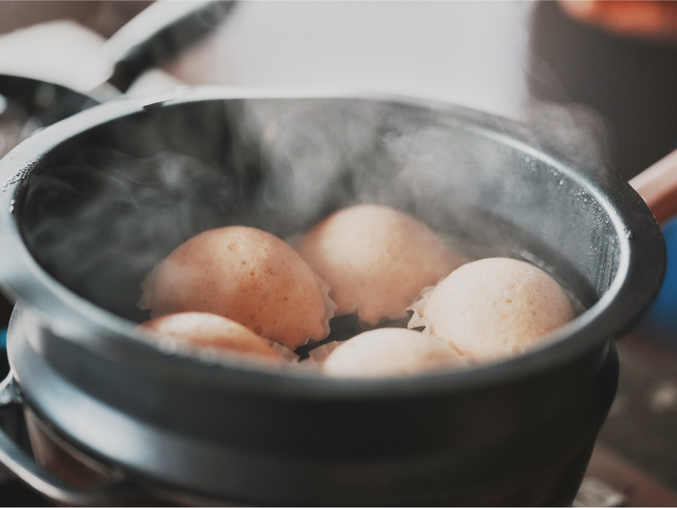 蒸し上がりはまるで卵のようなころんとしたフォルムもかわいい蒸しパン。素朴な甘さで優しい味です。お子さんのおやつや、ちょっと小腹がすいた時に。朝ごはんにもいいですね。