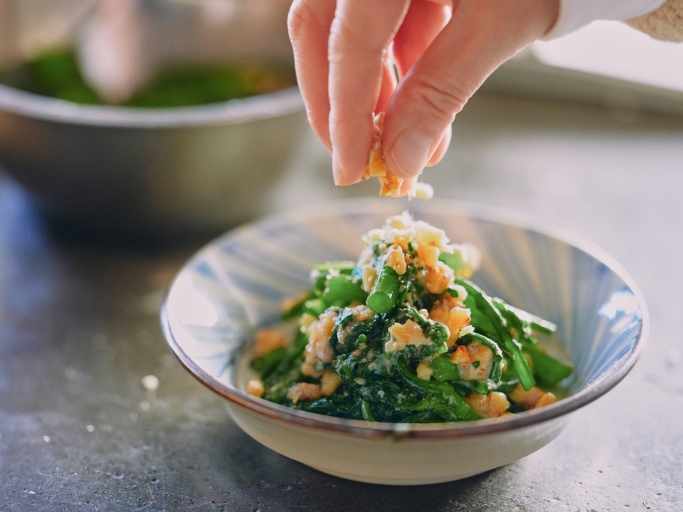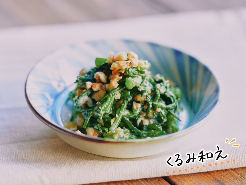 くるみの香ばしさと、春菊の爽やかな香りが相性抜群。お砂糖などを使わないあっさりとした味付けながらも、出汁を効かせるので旨みは十分です。そしてなんと言っても歯応えが良く、噛むほどに口いっぱいに香りが広がります。