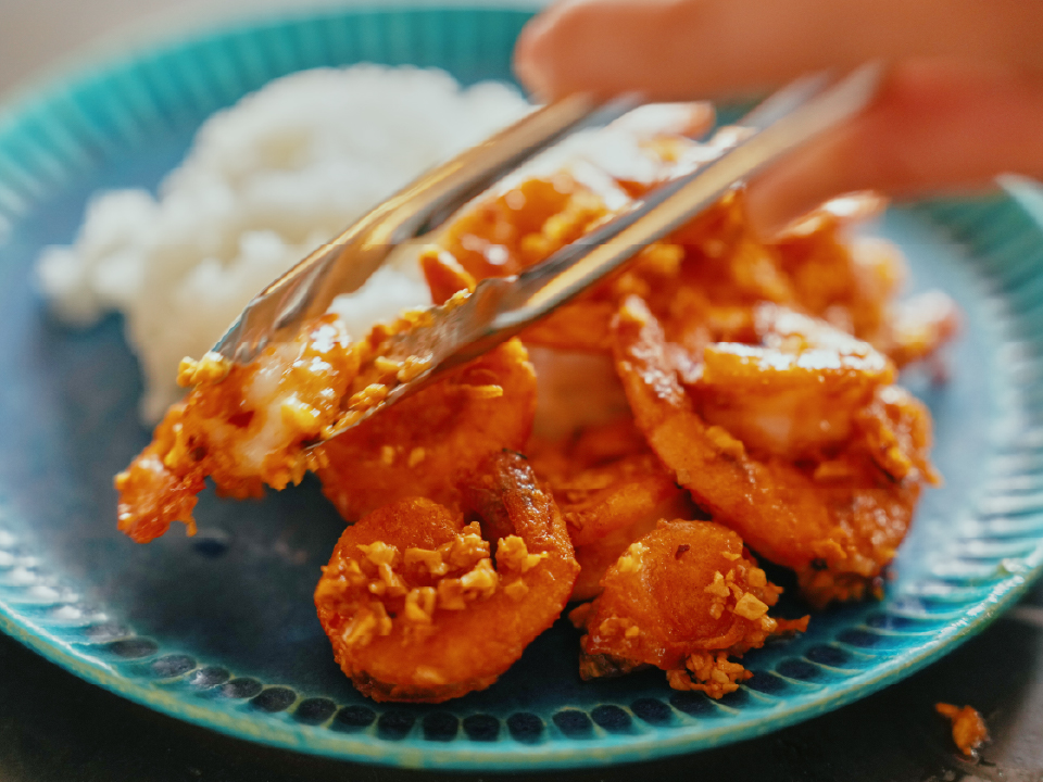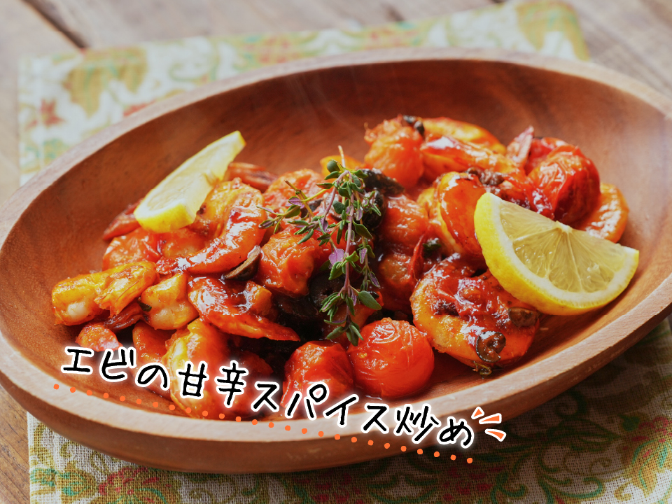エスニックな味わいがクセになる「エビの甘辛スパイス炒め」